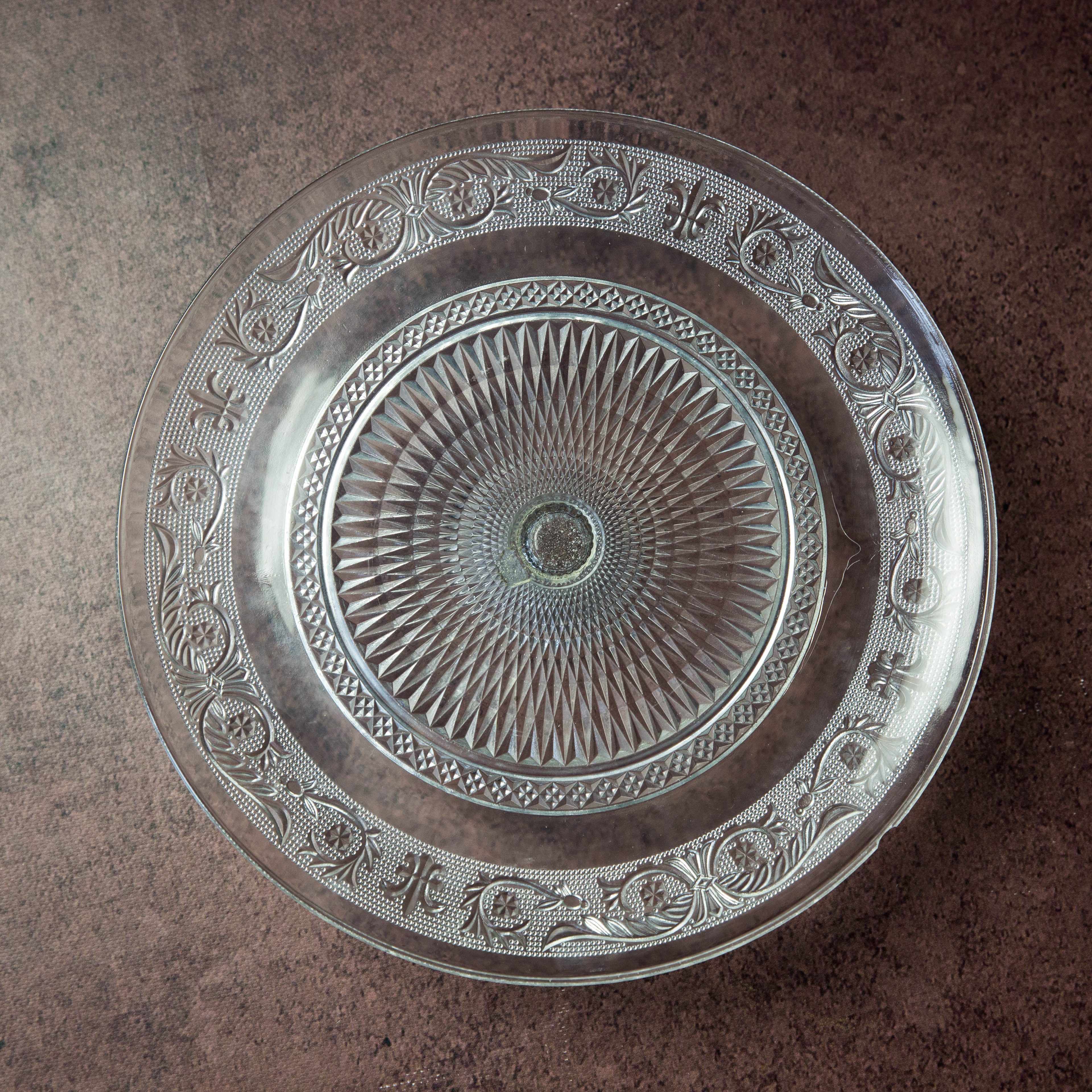 Présentoir en verre motif fleurs, dimension plateau 28cm, hauteur 8cm