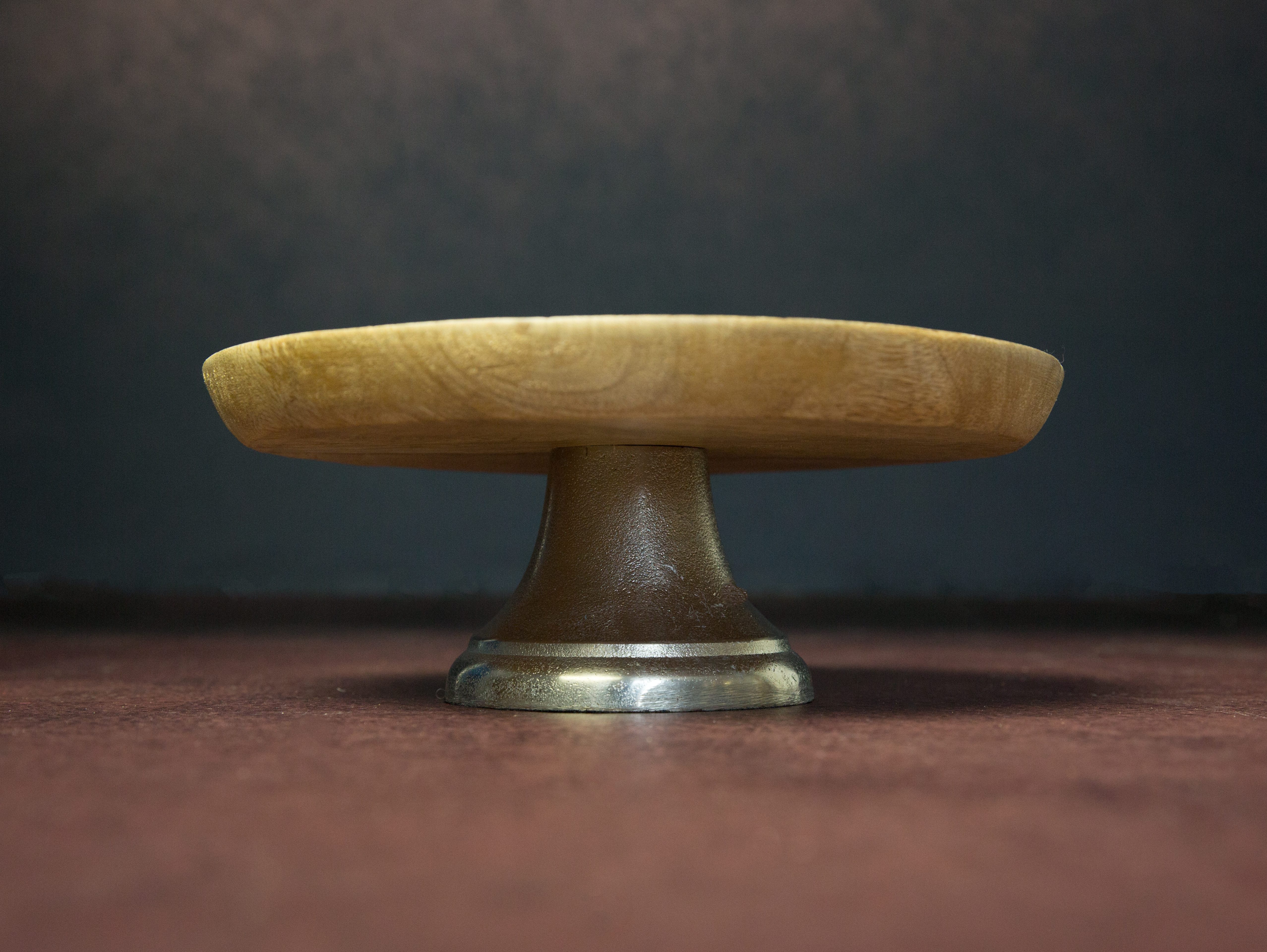 Présentoir plateau en bois pied argenté, dimension plateau 28cm hauteur 11cm