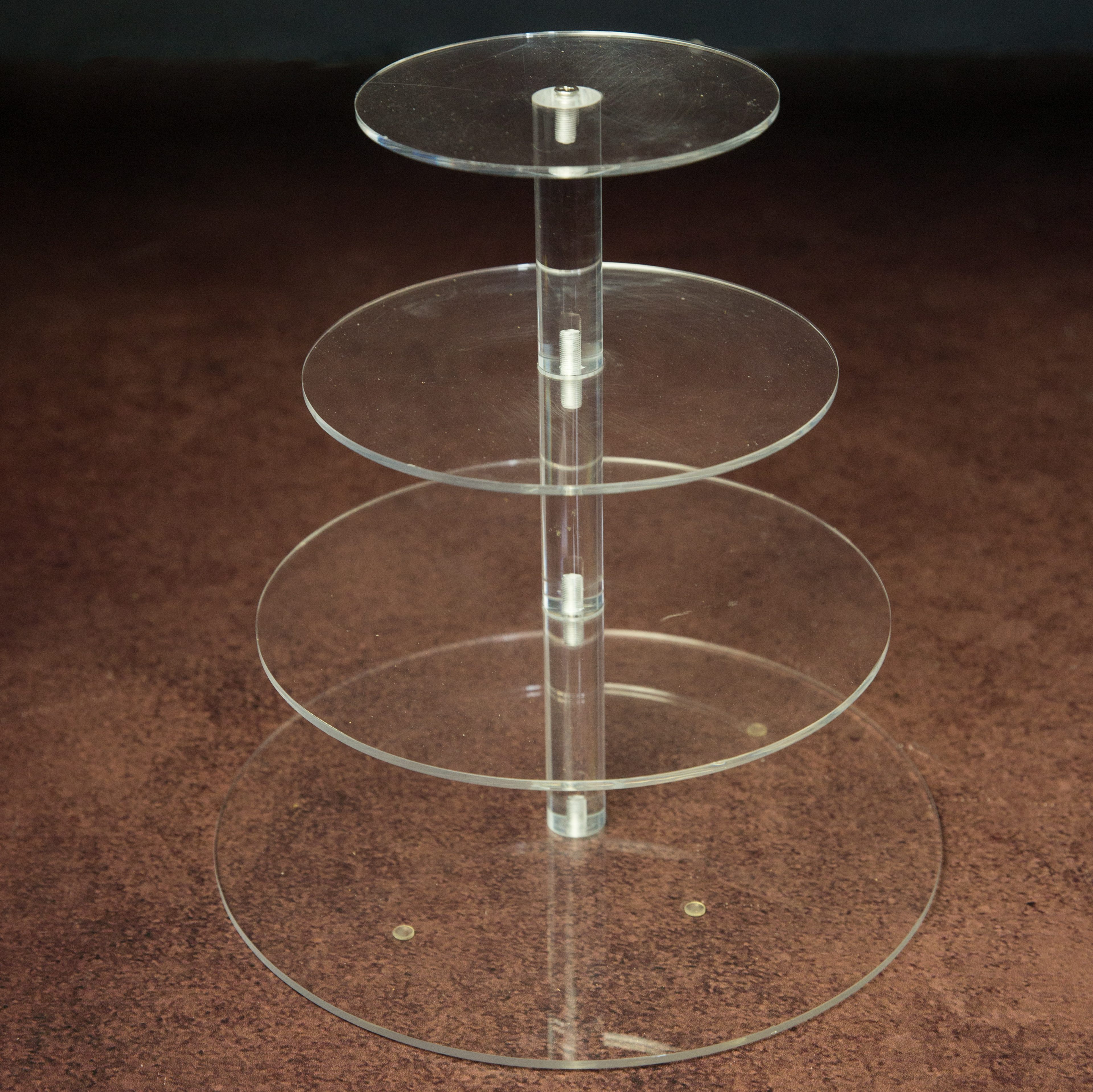 Présentoir en pyramide plexy transparent, dimension (plateaux 30,25,20 et 15cm) hauteur 31cm :
