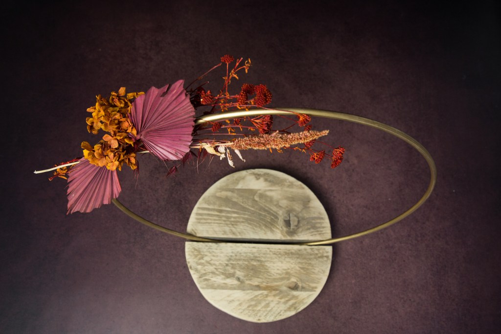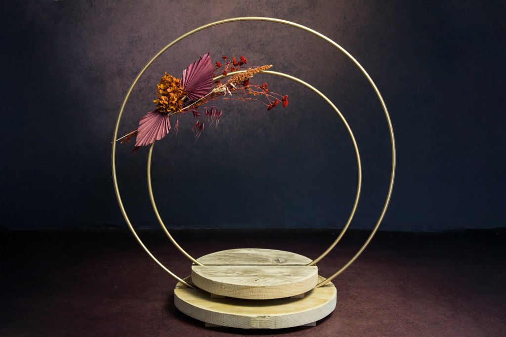 Presentoir base en bois cercle doré. Petit : cercle 60cm/ Grand : cercle 80cm