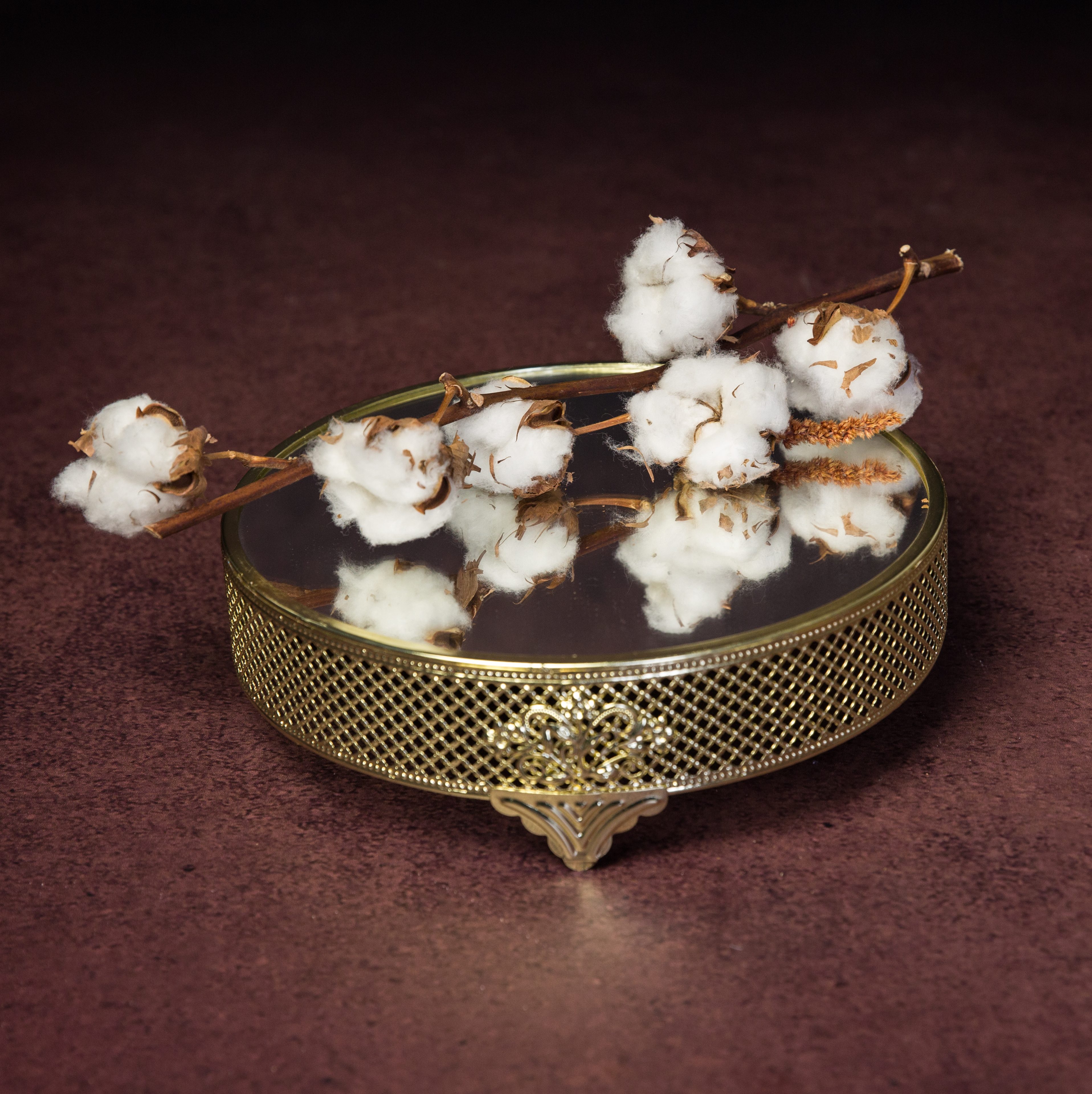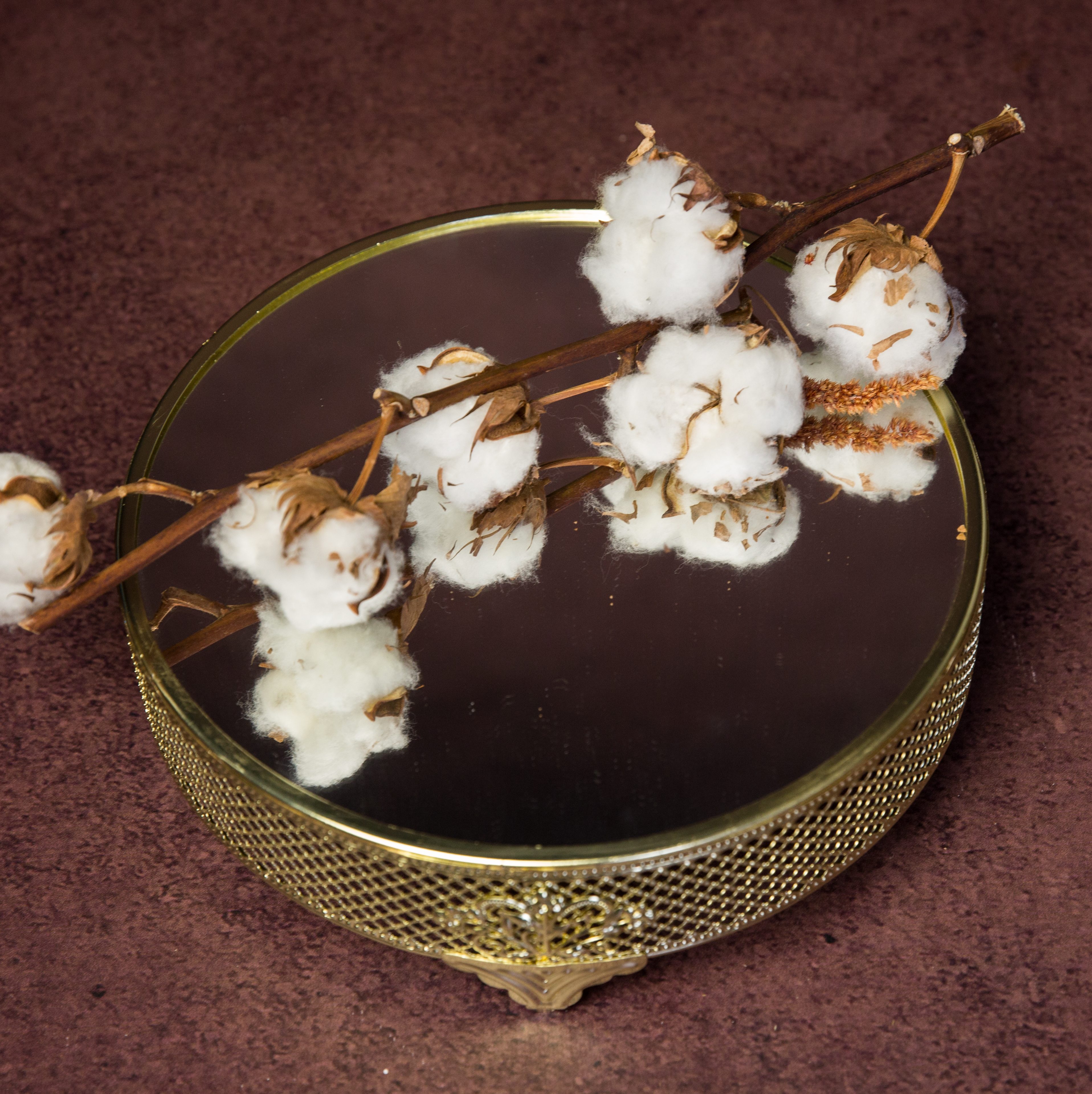 Présentoir doré, plateau miroir, dimension plateau 27cm, hauteur 8cm :