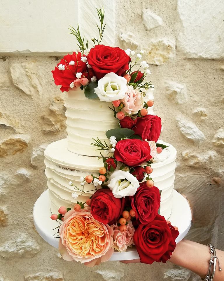 wedding cake cascade fleurs rouges juliette cake design / fleurs Domitille atelier floral J’aime chargement…