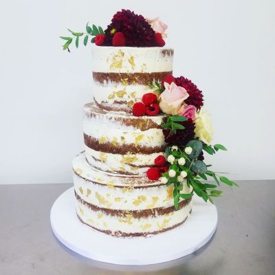 naked cake feuille d’or fleurs et fruits frais juliette cake design